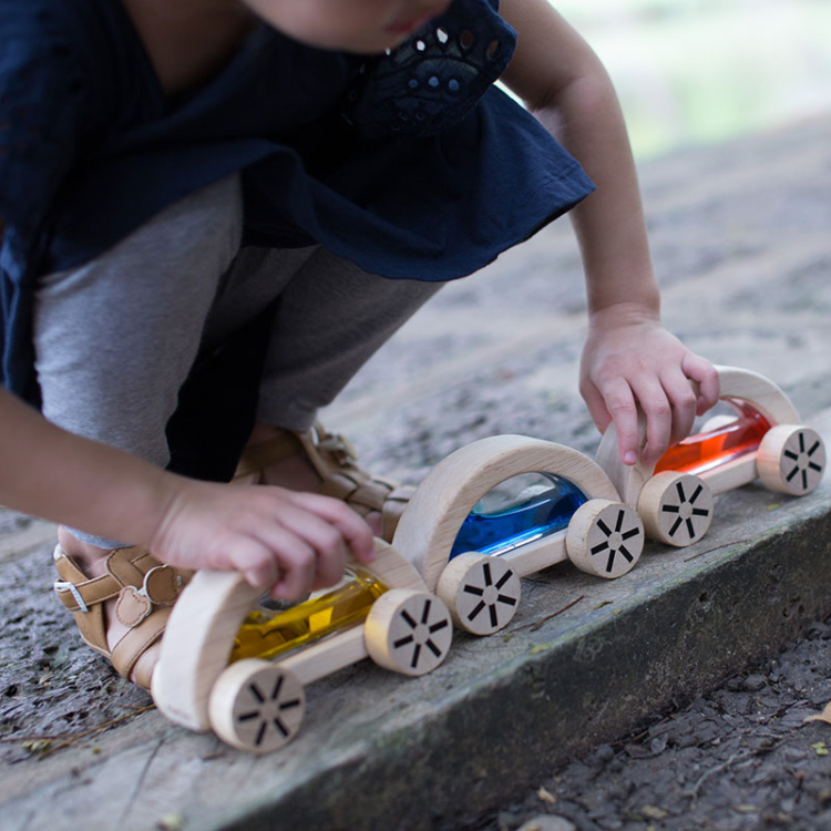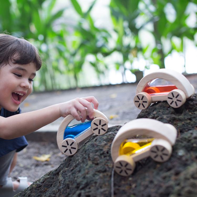 Αυτά τα ημικυκλικά αυτοκινητάκια έχουν χρωματιστό νερό στο εσωτερικό τους .Τα παιδιά απολαμβάνουν να τα κυλάνε.