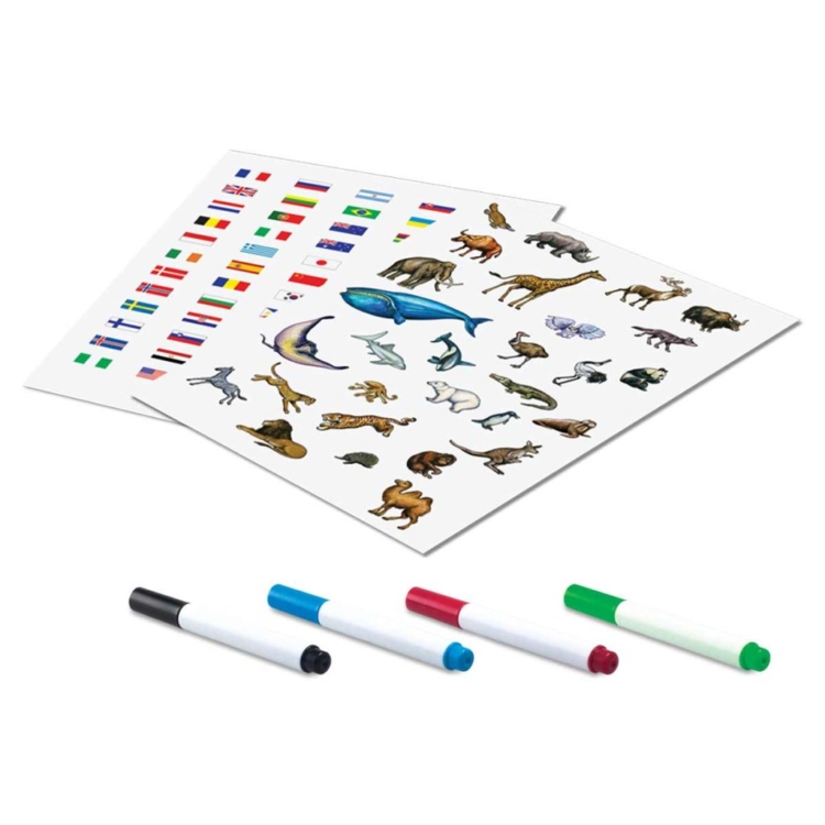 • 4 Μαρκάδορους που σβήνουν, αυτοκόλλητα (Σημαίες χωρών και ζώα)