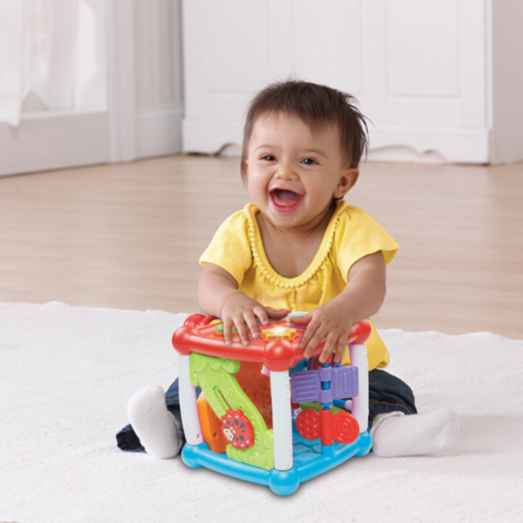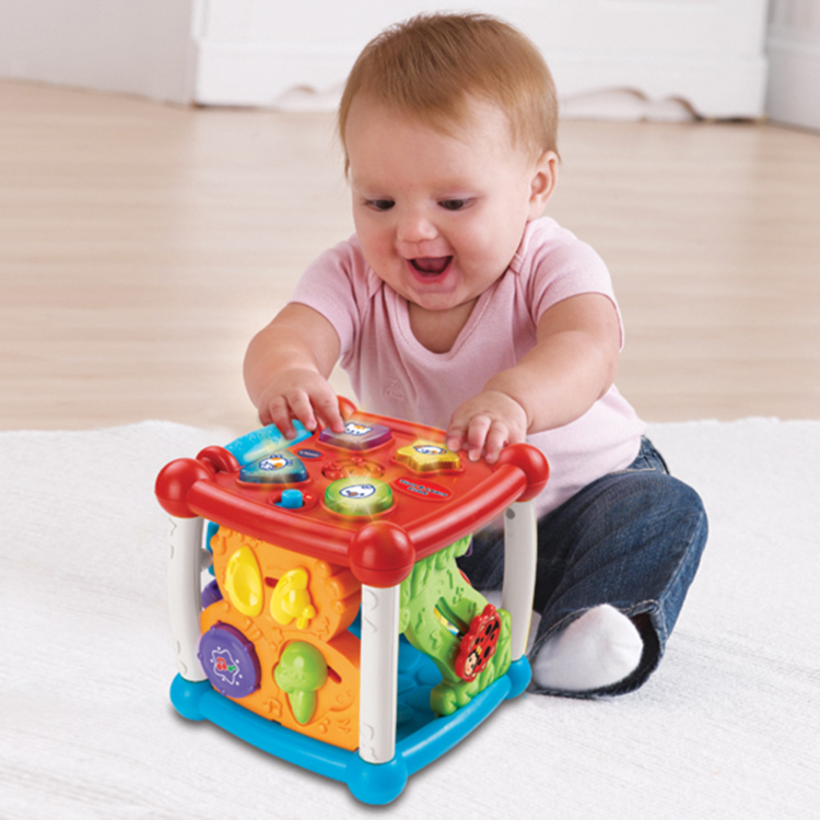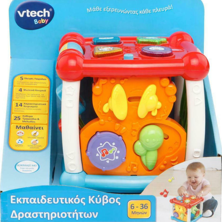 Κύβος δραστηριοτήτων με ήχους και φως. Κάθε πλευρά του κύβου προσφέρει μια διαφορετική δραστηριότητα για ανακάλυψη, σχημάτων, χρωμάτων, ήχων μουσικών οργάνων και ήχων ζώων. Με δύο επίπεδα ήχου και αισθητήρα κίνησης.