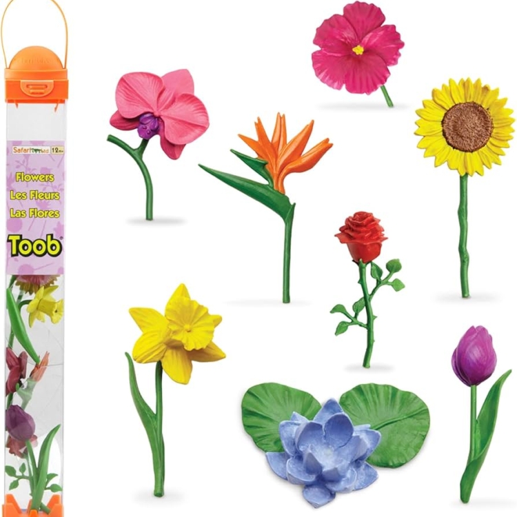Σετ με 8 μινιατούρες λουλουδιών! Ανακαλύψτε τον μαγικό κόσμο των ζώων και φυτών μέσα από τη συλλογή της Safari. Αυτό το Toob περιλαμβάνει ένα τριαντάφυλλο, τουλίπα, ιβίσκο, πουλί του παραδείσου, ασφόδελο, ηλίανθο, λωτό και μια ορχιδέα.