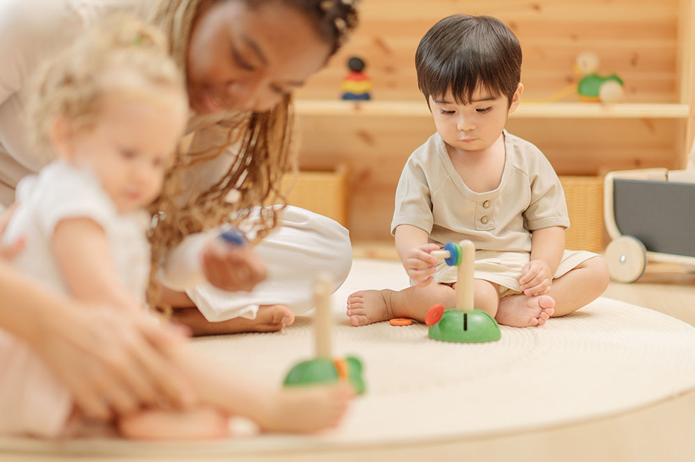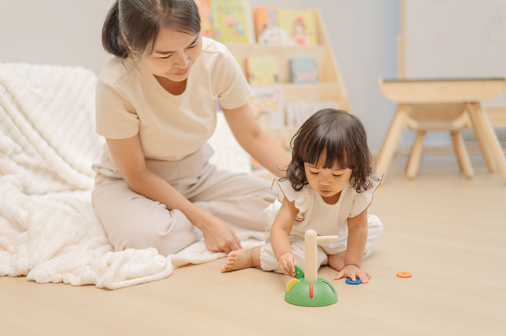 Ένας διαφορετικός πύργος ταξινόμησης που καλεί τα παιδιά να τοποθετήσουν τις ξύλινες ροδέλες σε οριζόντια θέση, είτε περιμετρικά της βάσης του ή στην υποδοχή στο πάνω μέρος του. Σκοπός του παιχνιδιού είναι να εξασκήσει λεπτές κινητικές δεξιότητες και συντονισμό ενω δυναμώνει τα δάχτυλα και τον τρόπο λαβής.