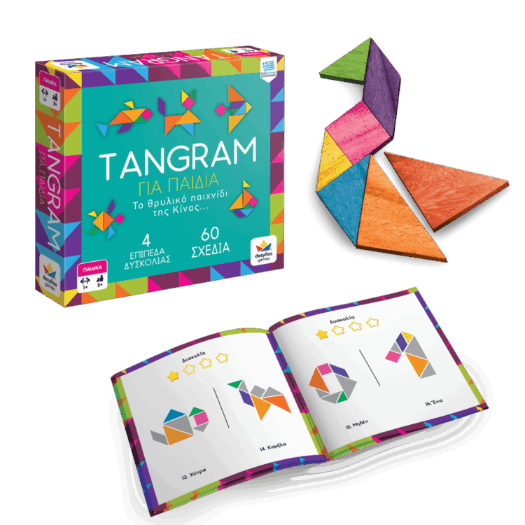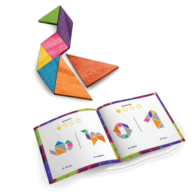 Το κλασικό παιχνίδι με μεγάλη ιστορια! Φτιάξτε τις εικόνες, μετακινώντας και περιστρέφοντας τα 7 σχήματα, ξεκινώντας από τις εύκολες και φτάνοντας στις πιο δύσκολες προκλήσεις. Συναρπαστικό, προκλητικό, δημιουργικό παιχνίδι για παιδια απο 5 ετών. Τα χρώματα βοηθούν στην αντιληψη του γριφου και της λύσης.